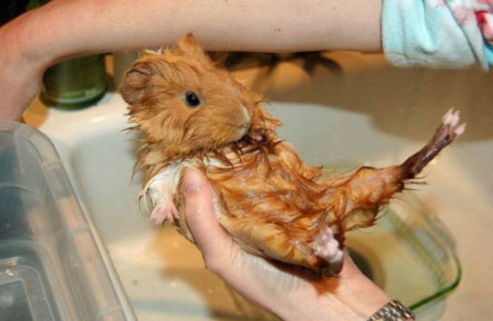 - если свинка во время водных процедур кричит и царапается, то лучше прервать процесс и приучать питомца к нему постепенно.