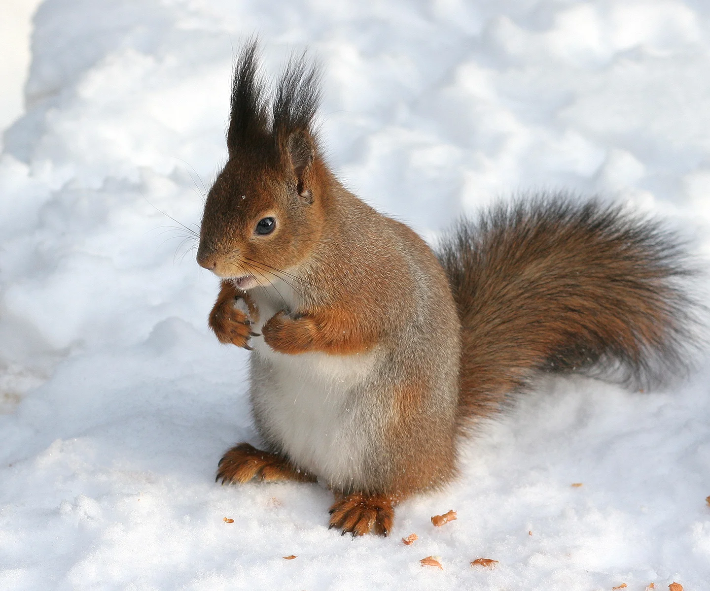 Что касается зимнего питания белок, то их рацион остается схожим с тем, что они едят в другие сезоны, только в сушеном виде. Чтобы обеспечить себя полноценным питанием, белки запасаются едой, пряча ее в дуплах или других укромных местах. У них может быть несколько таких “заначек” на случай, если одна из них будет обнаружена. Но даже в зимние месяцы белки не сидят без дела — они постоянно ищут пищу. В холодное время года они могут поедать даже шишки, особенно если других источников пищи нет. Не забывайте подкармливать белочек, особенно зимой: делайте кормушки и приносите им еду.