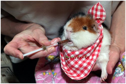 В каких еще продуктах содержится столь необходимый витамин С? Чем кормить морскую свинку? Можно давать зверьку салат, ягоды шиповника, сладкий перец, свежую зелень и пророщенное зерно. Другой вариант — смешивать витамины с питьевой водой (5 мг добавлять в поилку). Кроме этого, есть еще инъекционная аскорбиновая кислота, которая продается в обычных аптеках. Дозировку должен порекомендовать ветеринар.