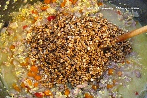 Возьмите несколько видов круп: гречку, перловку, кукурузу, чечевицу красную, маш, рис и пшено. Промойте и сложите в термос или термокружку.