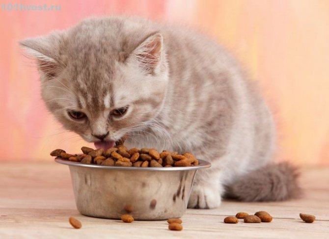 В течение первого месяца жизни котята получают питание исключительно от материнского молока. Переход на сухой корм должен происходить постепенно. Сначала котятам можно предлагать несколько кусочков сухого корма в качестве лакомства. Этот процесс адаптации занимает около 4-5 недель, после чего котята могут начать получать такой корм на постоянной основе.