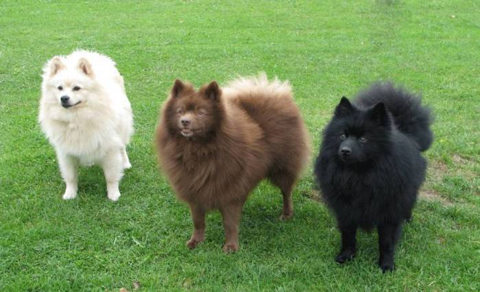 - гроссшпицы (большие шпицев, окрасы которых могут быть коричневыми, белыми или черными, рост около 50 см);