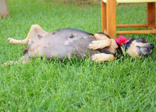 - Если нет льда, холодной водой смочите собаке шерсть и подушечки лап.
