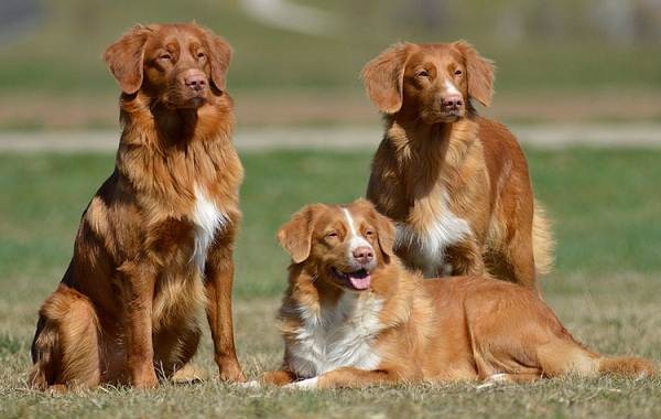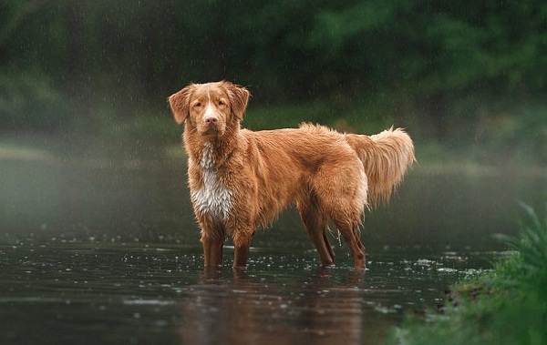 Новошотландский ретривер, или толлер, имеет средний размер, крепкое телосложение и густую водоотталкивающую шерсть. Он отличается дружелюбным и игривым характером, а также высокой энергией. Эти собаки обычно имеют ярко-рыжий или оранжевый окрас с белыми отметинами.