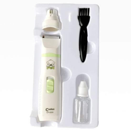 Это комбинированный тип триммера, дополнительно укомплектованный насадкой для резки когтей небольших собак. Покупатели отмечают преимущества модели — удобный корпус из пластика и металла, небольшой вес, керамические ножи, не обжигающие кожу животного. К минусам можно отнести питание от батареек.