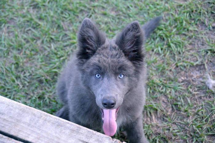 Голубые щенки в помете появляются очень редко, нестандартный окрас связан с дополнительным геном. Допускается наличие рыжих подпалин. Рабочие характеристики животного серого цвета ничем неотличимы от особенностей его стандартных сородичей.