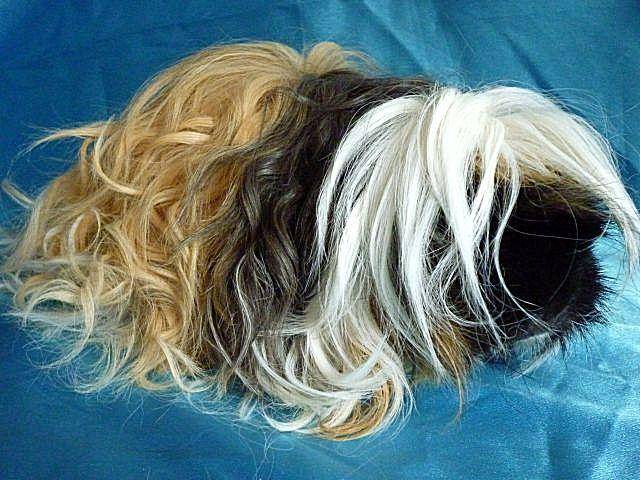 - Перуанская морская свинка относится к старейшим видам, которые имеют длинную шерсть до 30 см, закрывающую голову, круп. Перуанская морская свинка – это название, которое применяют для многих длинношерстых морских свинок. Главное отличие перуанской свинки от шелти — челка. У перуанских свинок волосы на голове растут вниз и спадают на глаза в виде челки, плюс у перуанцев есть пробор вдоль спины.