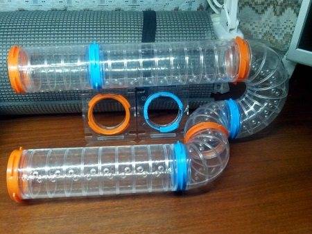 Лабиринт также можно сделать из остатков пластиковых труб. Выберите те, в которые хомяк может свободно проходить. Для их соединения используйте фитинги.