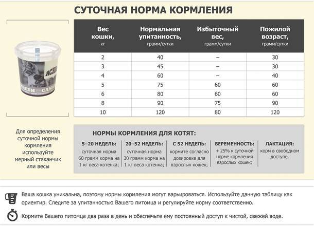 Суточная норма потребления назначается в зависимости от веса питомца:
