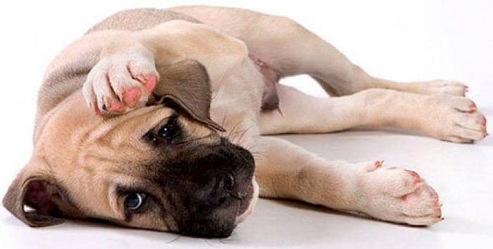 - Зуд. Собака активно чешет уши и часто мотает головой.
