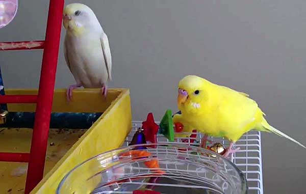 В клетке обязательно должны быть несколько перекладин и множество игрушек. Это могут быть лесенки, колокольчики, зеркала и другие интересные предметы. При наличии разнообразных атрибутов попугаи хорошо переносят одиночество.