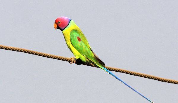 | 12. Нитехвостый Psittacula longicauda | • Индонезия • Малайзия • Сингапур | • У самцов красный клюв, у самок – черный. • Красные щечки. |
