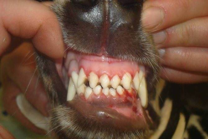 Контролировать рост и смену зубов. У крупных пород полная смена происходит до 9 месяцев, а у мелких – до 11 месяцев. При отставании от рекомендуемой нормы на 7-14 дней, кровоточивости, гнилостном запахе из пасти и потере сознания собаку нужно обязательно показать ветеринару.