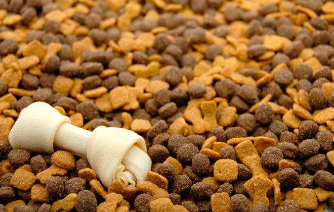 Сухой корм включает в себя все перечисленные ранее ингредиенты, начиная с риса и заканчивая мясной мукой, животным жиром, витаминами и минералами. В таких кормах часто преобладает кукуруза, в то время как содержание мяса остается относительно низким.