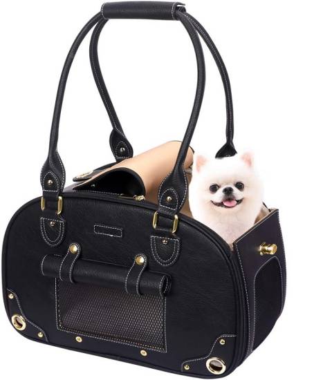 Сумочка. В таких переносках жесткое дно, имеющее неизменную форму, и мягкие боковые части. В верхней передней части сумки имеется вырез для головы. Эти используются для переноски для маленьких собак (средних пород). С ними удобно пойти на мероприятие, можно отвезти собаку к ветеринару, или просто донести до места выгула. Подходят для спокойных животных, не жаждущих выпрыгнуть из сумки на ходу. Сумка переноска для маленьких собак, чаще всего, имеет «гламурный» вид, множество расцветок, украшен стразами, блестками, узорами, лентами;