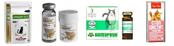 При хроническом цистите можно давать кошке в небольших дозах отвары мочегонных трав, гомеопатические препараты (например, Кантарен), а также средство «Кот Эрвин» и другие. Часто рекомендуется использовать специальное диетическое питание, такое как Royal Canin Urinary. Эти меры помогают улучшить фильтрацию в почках, снизить концентрацию солей в моче и увеличить её отток.