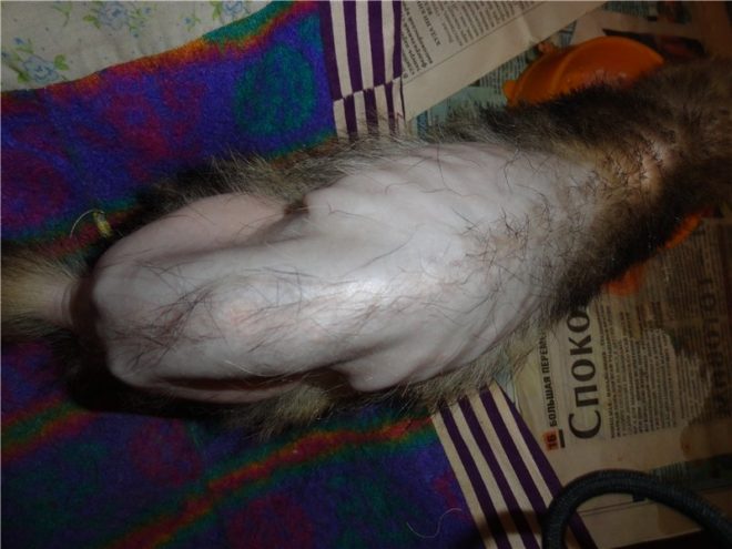 В большинстве случаев облысение связано с банальным засорением пор. Причин тому две – засаливание кожи из-за изменений гормонального фона в период течки (у самок) или гона (у самцов) и недостаточно хороший уход животным за собственной шерстью.