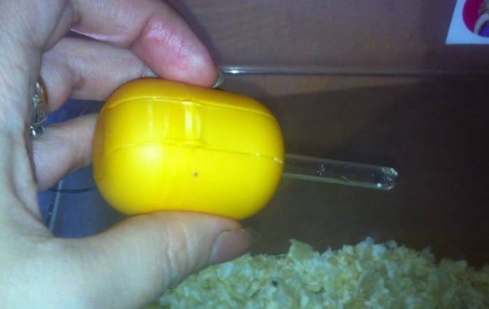 Как избежать этих проблем? Во-первых, сделайте бортики выше, чтобы вода не переливалась через них. Высота должна быть оптимальной, чтобы грызун мог легко добраться до воды, не залезая в поилку. Достаточно одного-двух сантиметров. Во-вторых, прикрепите емкость к тяжелому предмету, например, деревянному бруску – его хомяк не сможет опрокинуть.