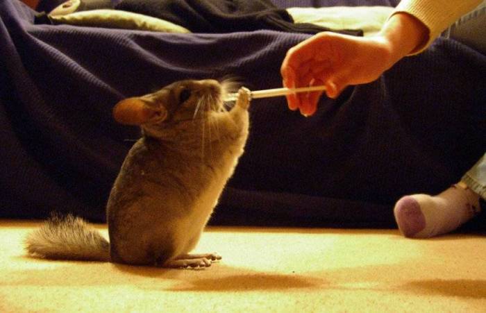 Чтобы шиншилла смогла точить свои зубки, в ее клетку стоит положить веточки деревьев (груша, яблоня, верба, липа, береза, лесной орех и др.). Ни в коем случае нельзя давать шиншилле веточки хвойных деревьев, а также ветки дуба, сливы, вишни, грецкого ореха, цитрусовых, так как в них содержится огромное количество смол.