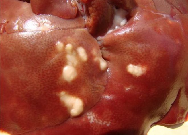 Внутренности кролика, зараженного кокцидиозом
