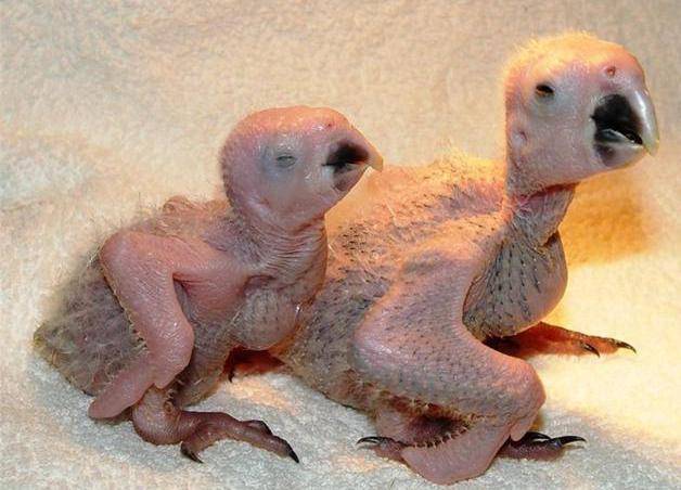 Уход за маленькими ара требует особой осторожности. Частое заглядывание в гнездо может привести к тому, что самка решит избавиться от своего потомства.