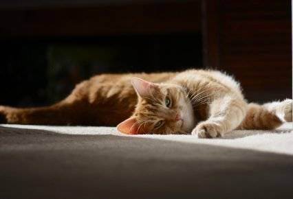 - Кошка меньше двигается и старается находиться в тени — это помогает замедлить метаболизм и остановить расщепление углеводов.