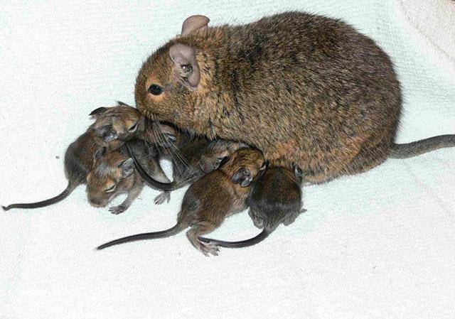 В этот период размножения крайне важно контролировать вес и предлагать кормящей самке дегу усиленное калорийное питание