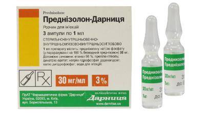 После парентерального введения ГКС может развиваться парадоксальная тяжелая аллергическая реакция (отек надгортанника, бронхоспазм), особенно у пациентов с аллергическими заболеваниями или указаниями на их наличие в анамнезе. Для устранения острой аллергической реакции применяют эпинефрин в дозе 0,1–0,5 мг в/в медленно, для купирования бронхоспазма — аминофиллин в/в, при необходимости — ИВЛ.
