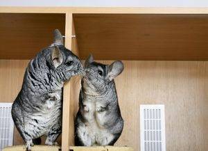 При наступлении течки у самки шиншилл, самец начинает издавать короткие плавные звуки означающие призыв к спариванию