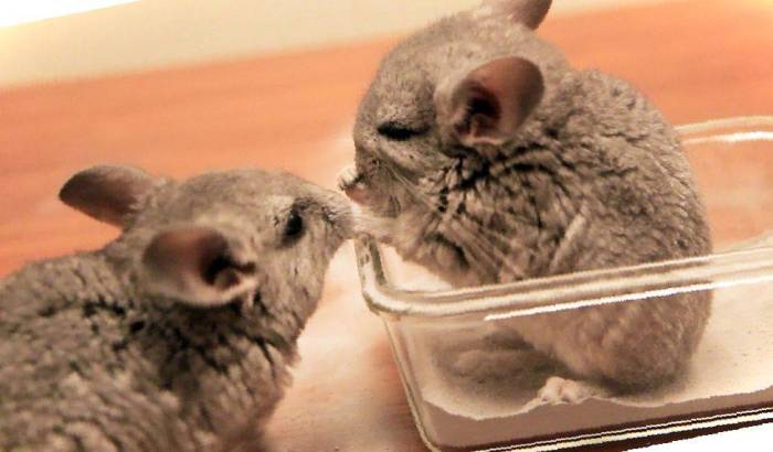 Во время еды многие шиншиллы издают необычные звуки, и не стоит этого бояться. Таким образом, они демонстрируют свое удовольствие от пищи. Обычно эти звуки напоминают кваканье утки.