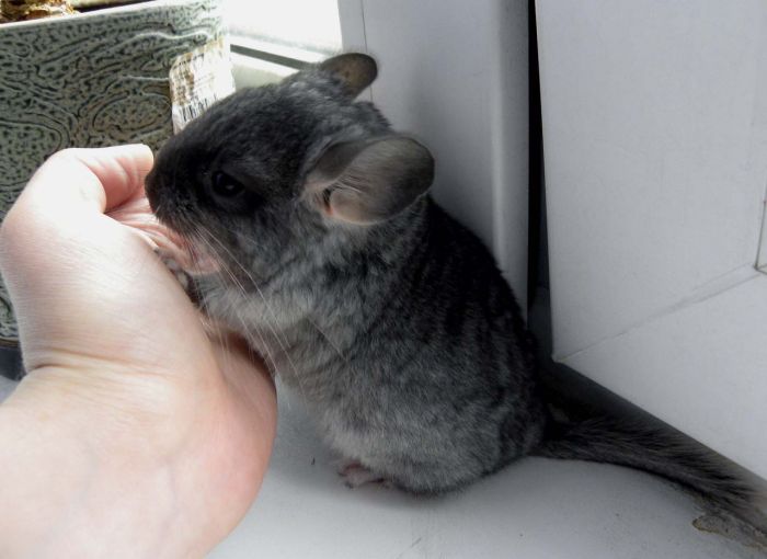 Если прошлый владелец уделял шиншилле много внимания, то добиться доверия животного будет намного проще. Зверек быстро поймет, что ему ни чего не угрожает и начнет брать угощенье из рук.
