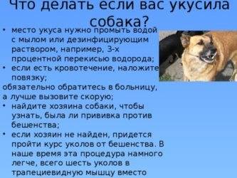 Если вас укусила собака, важно немедленно промыть рану под проточной водой с мылом и обратиться к врачу. Врач может назначить курс профилактической вакцинации против бешенства, особенно если собака не была вакцинирована или её состояние вызывает опасения.