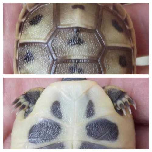 - Половую принадлежность черепахи можно легко определить по форме клоаки: у самок она напоминает звездочку, а у самцов имеет вид продольной полосы.
