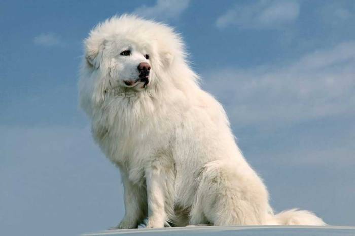«Визитная карточка» породы комондор – густая длинная белая шерсть, которая завивается в жгуты, похожие на тонкие косички.