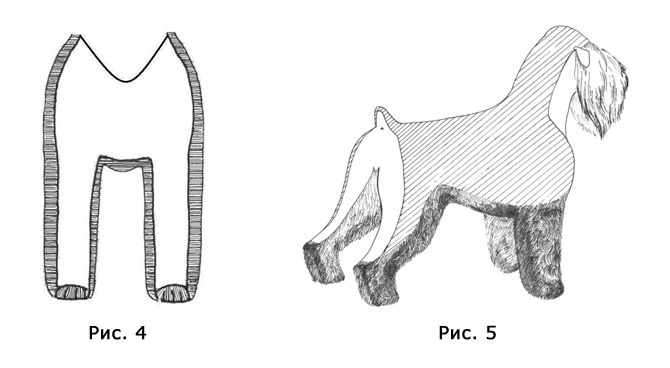 Передние конечности стригутся “столбиком”. Выступающая шерсть на лапах выравнивается таким образом, чтобы придать им округлую форму (рис.4).