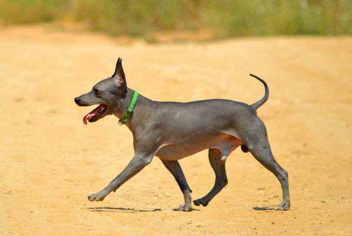 Это энергичная и ловкая собака среднего размера, отличающаяся умом и любопытством. По своей природе она охотник, хотя отсутствие шерсти делает такую деятельность маловероятной. Собака нуждается в защите от холода и солнечных лучей, иногда может потеть. Цвет кожи голых терьеров может быть любым, часто с контрастными пятнами на основном фоне. Шершащие особи могут иметь окрас: белый, коричневый, черный, пестрый, двух- или трехцветный с белыми пятнами, а также голубой и абрикосовый. Эта порода используется в качестве компаньона. Высота в холке может достигать 46 см.