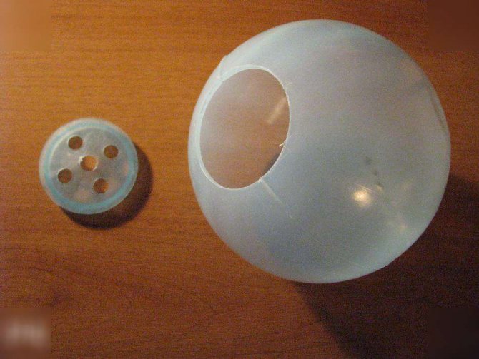 Старый круглый плафон из пластика очень хорошо подойдёт, чтобы создать игрушку для питомца. Пластик должен быть прозрачным, чтобы зверёк видел, куда он направляется. Обычно такие плафоны имеют диаметр 13-15 см, поэтому шарики из них можно делать как для джунгариков, так и для молодых сирийцев.