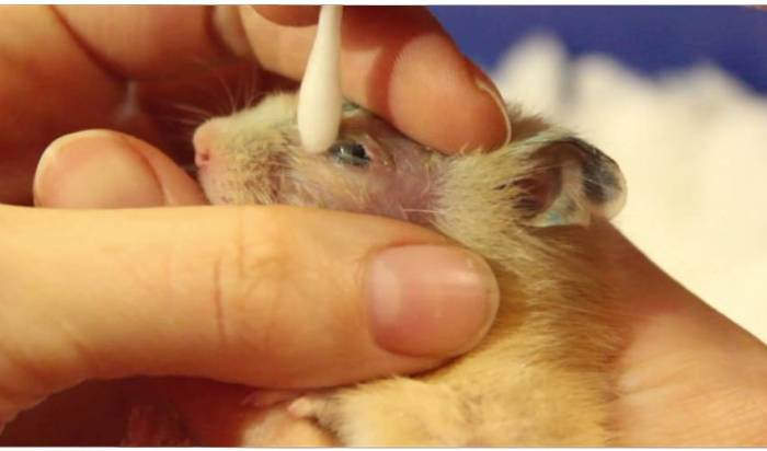 Конъюнктивит – это довольно распространенное заболевание среди хомяков, и его часто вызывают выпуклые глаза этих животных. В некоторых случаях веки могут полностью слипаться из-за гнойных выделений. Владельцам хомяков рекомендуется регулярно очищать глазки питомца с помощью физиологического раствора или раствора фурацилина, а затем закапывать глазные капли с антибиотиком, например, Флоксалом, четыре раза в день.