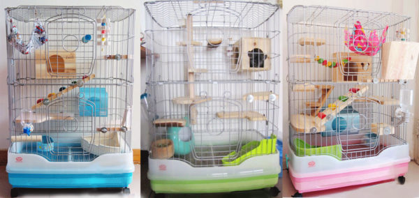 Многие владельцы выбирают металлические клетки, так как они недорогие, и их легко мыть и убирать. Среди недостатков такого жилища можно отметить плохую шумоизоляцию. Когда зверьки ночью затевают возню и начинают бегать по клетке, то издают слишком громкий шум, мешая хозяевам спать. Еще один минус заключается в том, что разбрасывают остатки корма и наполнителя во все стороны и придется проводить ежедневную уборку территории возле клетки.