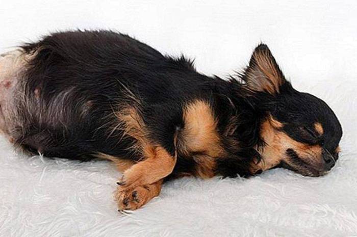Если собака длинношерстная, то можно слегка укоротить шерсть на животе.