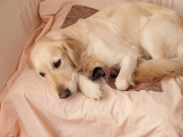 - четвероногий друг ищет укромное место для отдыха.