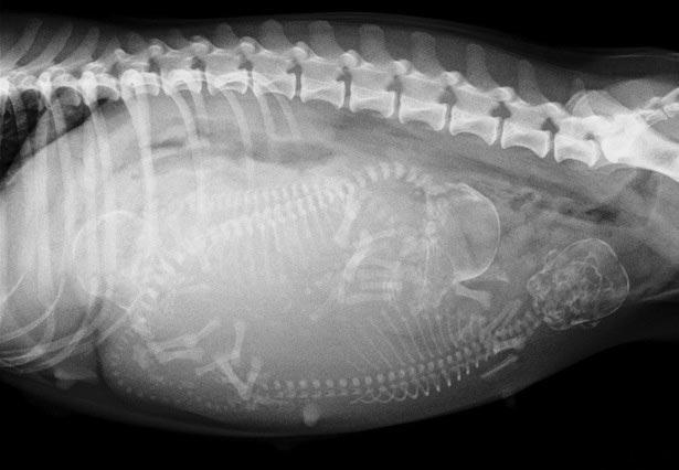 - На сорок восьмые сутки с помощью рентгеновского обследования можно определить количество щенков.