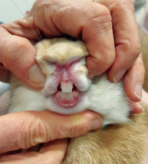 Малокклюзия у кролика бывает двух видов: врожденная и приобретенная. Если животное полностью здорово, при закрытии рта резцы будут смыкаться. При неправильном прикусе между ними будут возникать зазоры, в результате чего они не будут стачиваться.