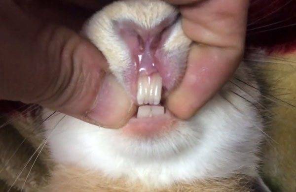 Необходимо обратиться за ветеринарной помощью если у кролика выросли большие зубы. Многие хозяева с целью сэкономить самостоятельно укорачивают резцы питомцу – подрезают их кусачками, подпиливают пилкой для ногтей.