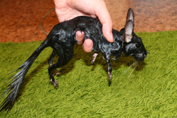 Рождение. Новорожденные шиншиллята появляются на свет зрячими, с уже прорезавшимися зубами и небольшим количеством меха. В этот период, который длится до двух недель, они питаются материнским молоком.