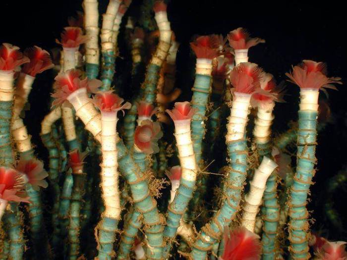 Гигантский трубчатый червь обитает на глубине от 500 до 800 метров, вблизи холодных морских течений, в тех местах, где из дна океана выходят нефть и метан. Этот удивительный организм существует в симбиозе с серными бактериями, которые обитают на его поверхности. Гигантский трубчатый червь может вырастать до более чем трех метров в длину (хотя его рост происходит очень медленно) и способен жить до 250 лет. Обычно эти черви собираются в большие колонии, состоящие из тысяч особей.