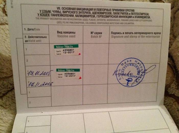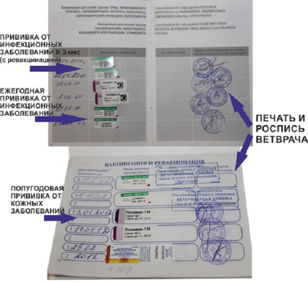 Важно! Особое значение имеет информация о сделанных прививках от бешенства. Без штампа ветклиники и подписи врача вакцинация считается недействительной