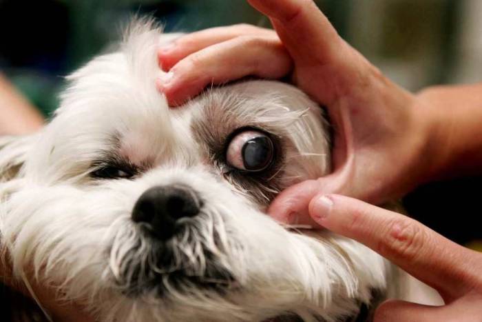 Паразитами, обитающими в глазах – когда черви вырастают, собака видит их как темные пятна. Пытаясь сфокусироваться, она начинает трясти головой и чесать глаза.