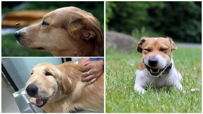 Что делать если собаку укусила пчела в лапу, морду, губу, уши