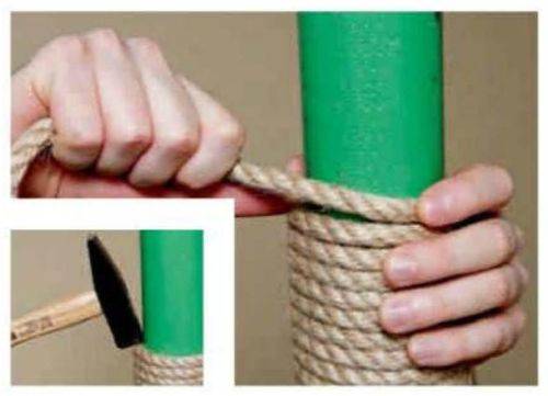 Создать когтеточку самостоятельно довольно просто. Для этого достаточно обмотать палку толстой веревкой.